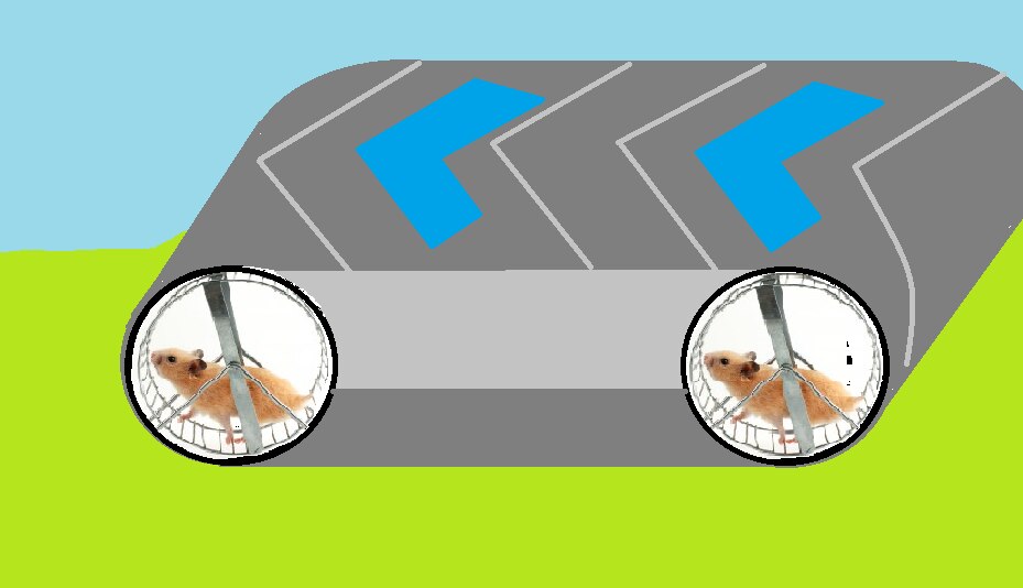Les trucs et les flèches glissent vers le bas, ce qui fait que ça avance jusqu'aux machines, qui sont elles-mêmes sur pilotis pour ne pas pencher. Les aliens ont des pattes plus grandes d'un côté façon dahu pour rester stables, et le cosmonaute a un bâton de rando caché dans sa combinaison spatiaaaaaaaaaaaale.